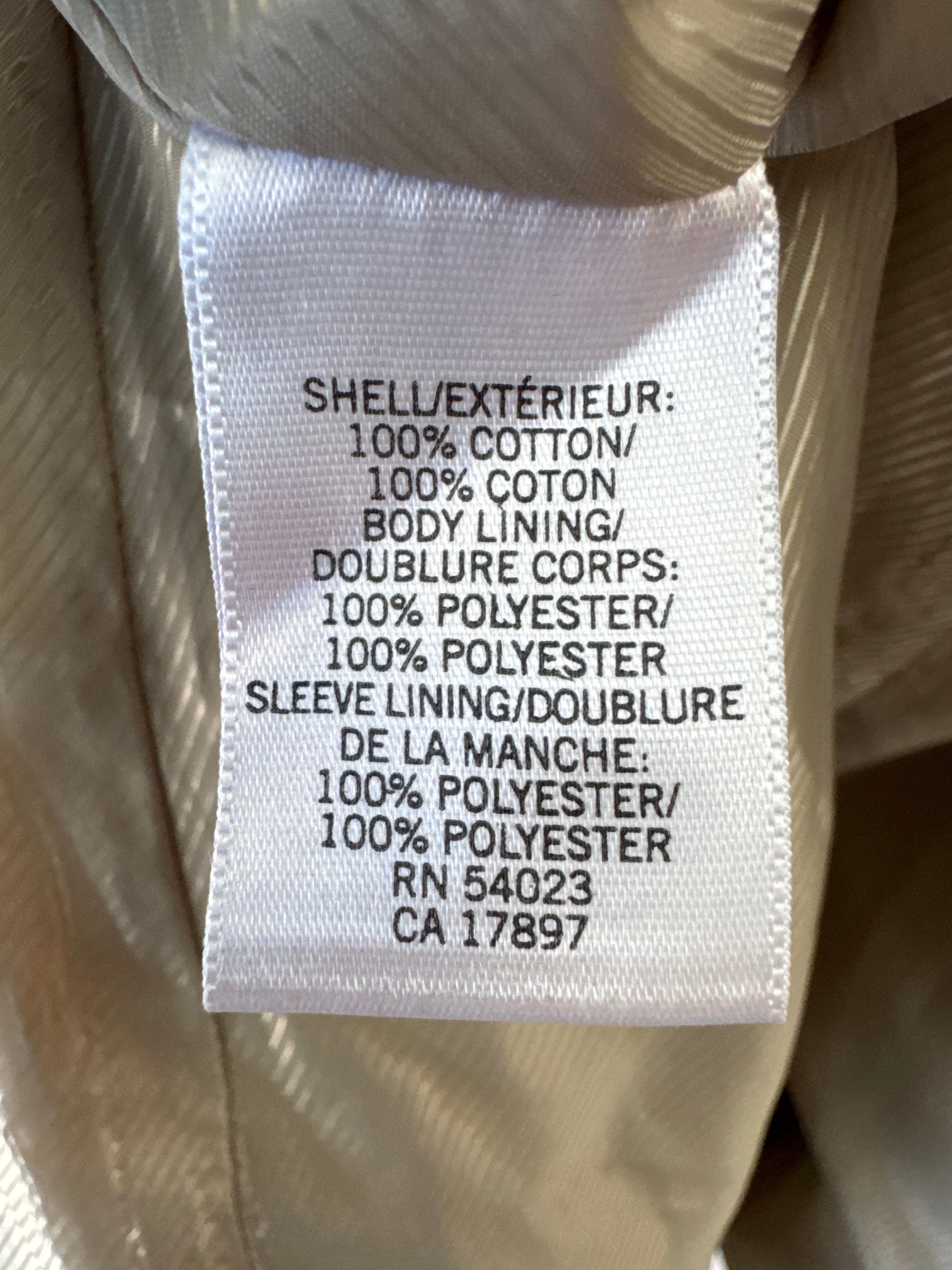 The shell is made of 100% cotton fabric with a polyester lining.
